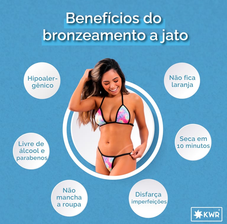 O bronze a jato é um procedimento estético seguro que promove um bronzeado imediato, uniforme e natural, sem necessidade de exposição ao sol.